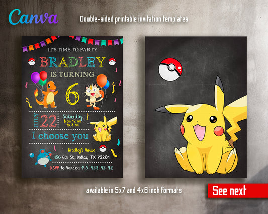 Pokemon customizable invite template | instant download | Share or Print | ME084