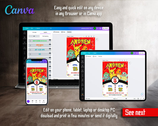 Pokemon Pikachu customizable invitation template | Share or Print | | PO743