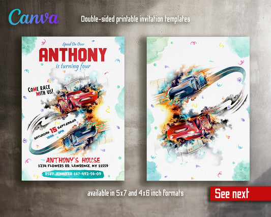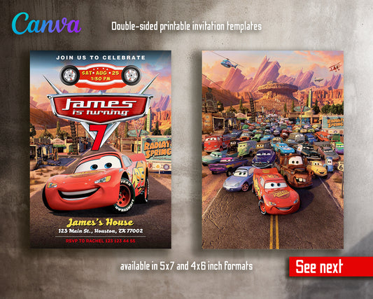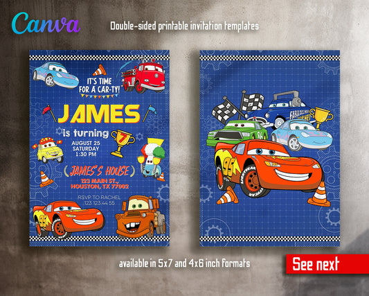 Cars Lightning Mcqueen Two customizable invitation template | Share or Print | boy | FR481