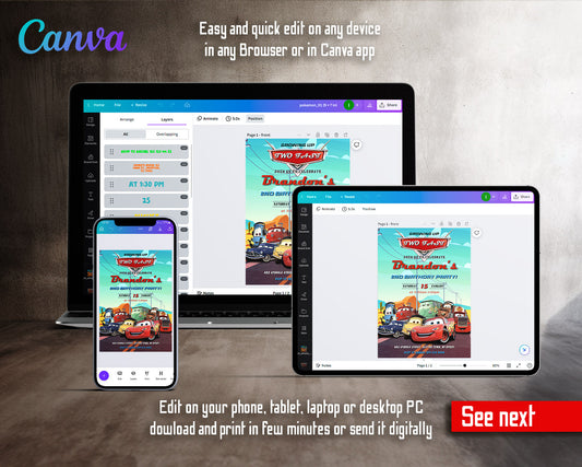 Cars Lighting McQueen customizable invite template | instant download | Share or Print | DZ439