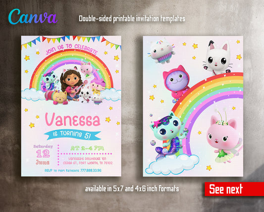 Gabby's Dollhouse customizable invite template girl | instant download | Share or Print | HY676