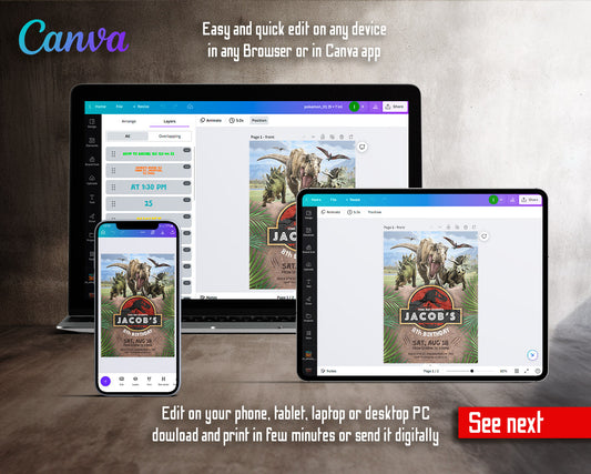 Jurassic Park Dinosaur customizable invitation template | Share or Print | | LC029