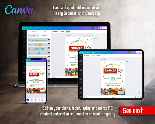 Lego customizable invite template boy | instant download | Share or Print | CR442