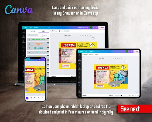 Lego customizable invite template boy | instant download | Share or Print | OD454