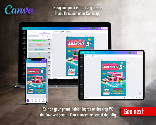 Lego Swimming Pool customizable invitation template | Share or Print | | OR377