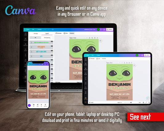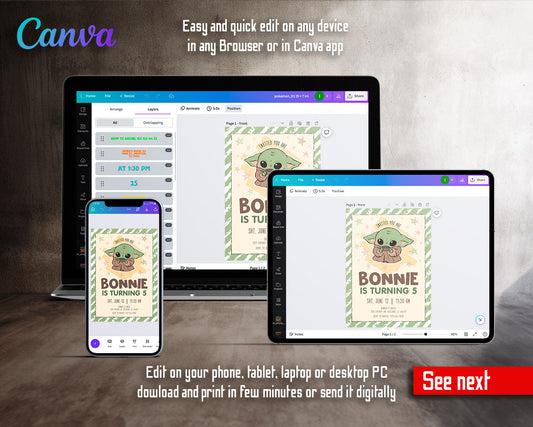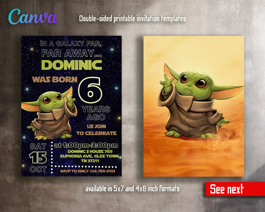Baby Yoda Grogu Star Wars Mandalorian customizable invitation template | Share or Print | boy | DP710