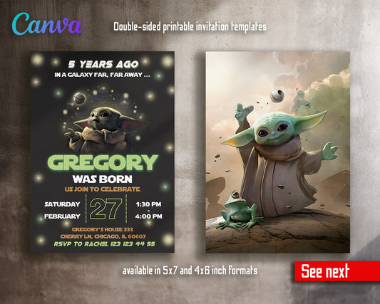 Baby Yoda Grogu Star Wars Mandalorian customizable invitation template | Share or Print | boy | LR311