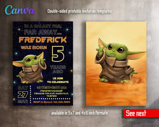 Baby Yoda Grogu Star Wars Mandalorian customizable invitation template | Share or Print | boy | FK709
