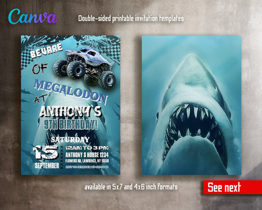 Monster Jam Megalodon customizable invite template boy | instant download | Share or Print | EW724
