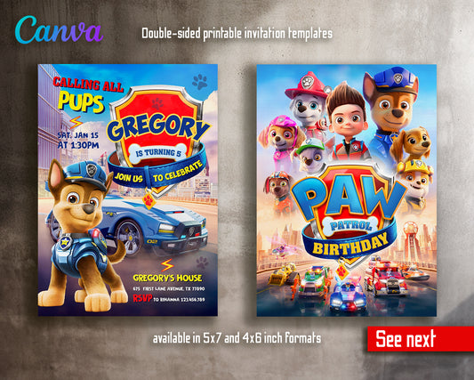 Paw Patrol customizable invite template | instant download | Share or Print | VX065
