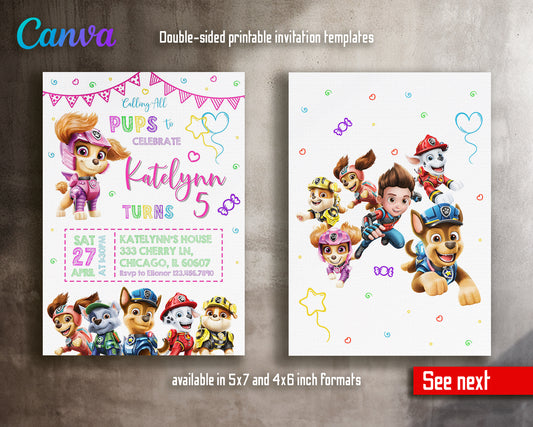 Paw Patrol customizable invite template girl | instant download | Share or Print | KO407