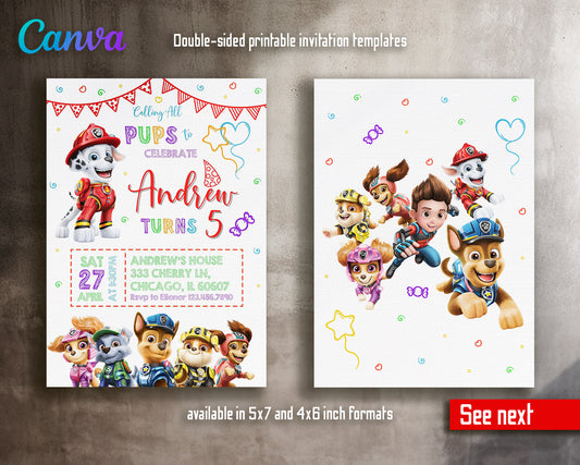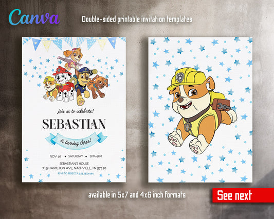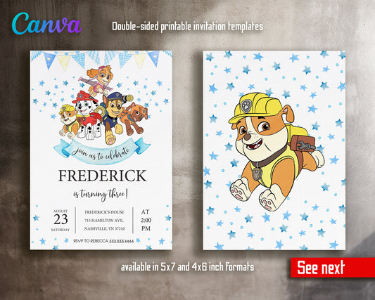 Paw Patrol customizable invite template | instant download | Share or Print | RP003