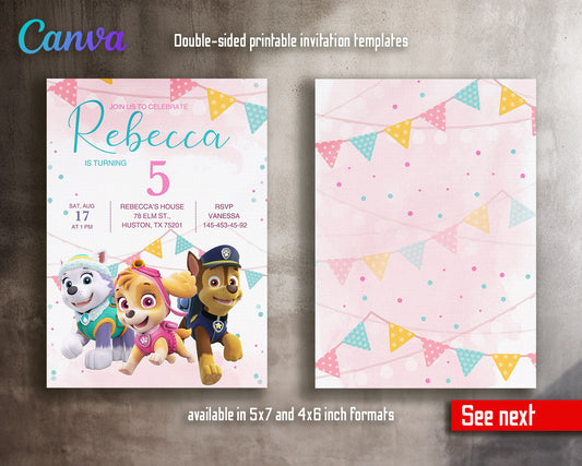 Paw Patrol customizable invite template girl | instant download | Share or Print | LR817