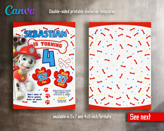 Paw Patrol customizable invite template boy | instant download | Share or Print | VH189