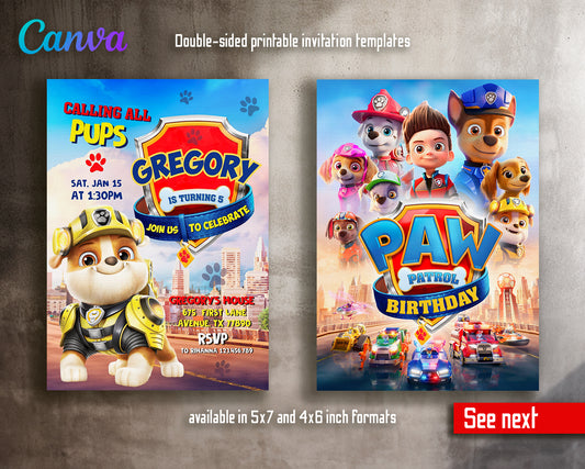 Paw Patrol customizable invite template | instant download | Share or Print | KN116