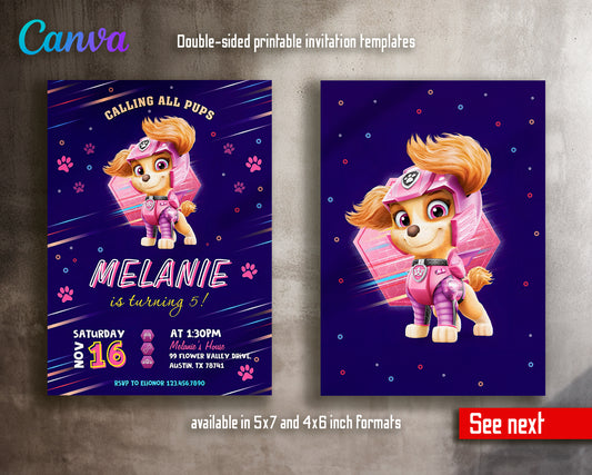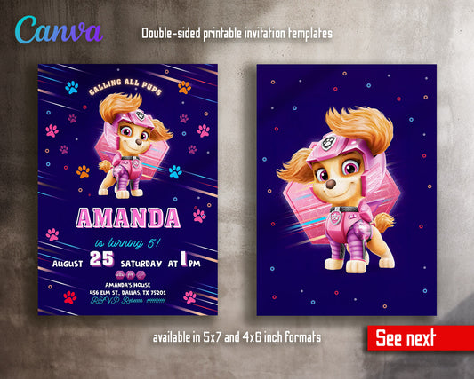 Paw Patrol customizable invite template girl | instant download | Share or Print | AP247