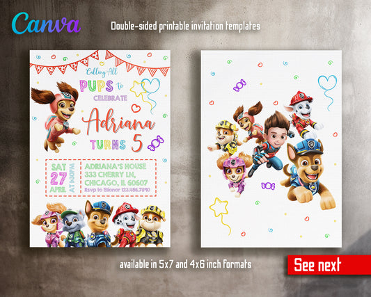 Paw Patrol customizable invite template unisex girl boy | instant download | Share or Print | WP991