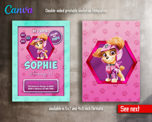 Paw Patrol customizable invite template girl | instant download | Share or Print | WJ850