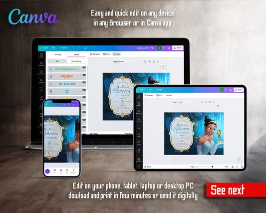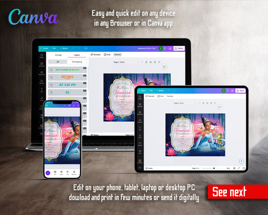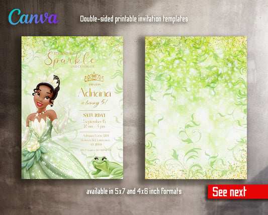 Tiana Frog Princess customizable invitation template | Share or Print | girl | GM631
