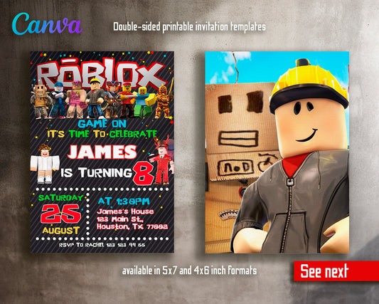 Roblox Gamer customizable invitation template | Share or Print | | EQ328