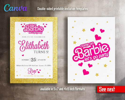 Barbie Pink customizable invitation template | Share or Print | girl | GL456