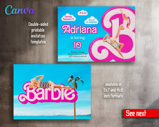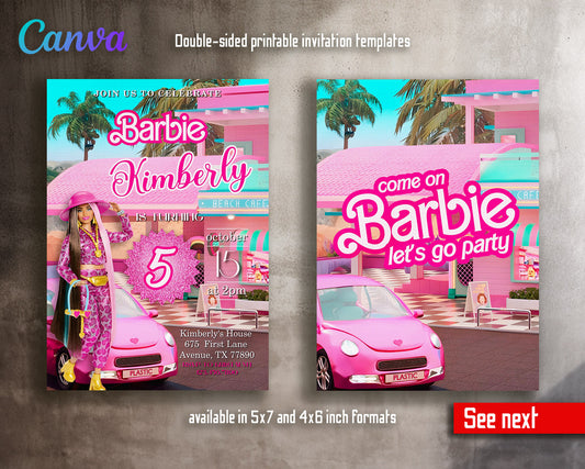 Barbie Pink customizable invitation template | Share or Print | girl | PJ086