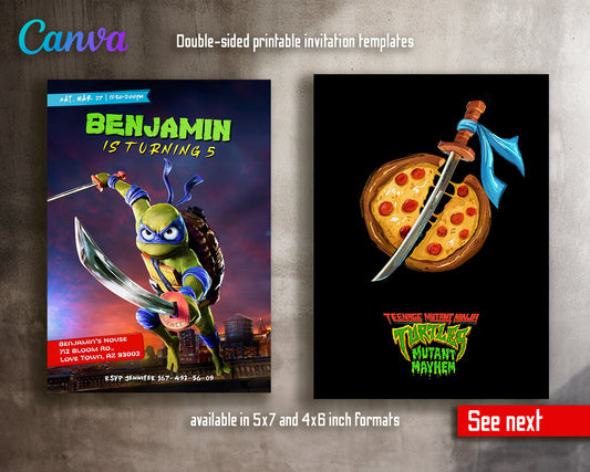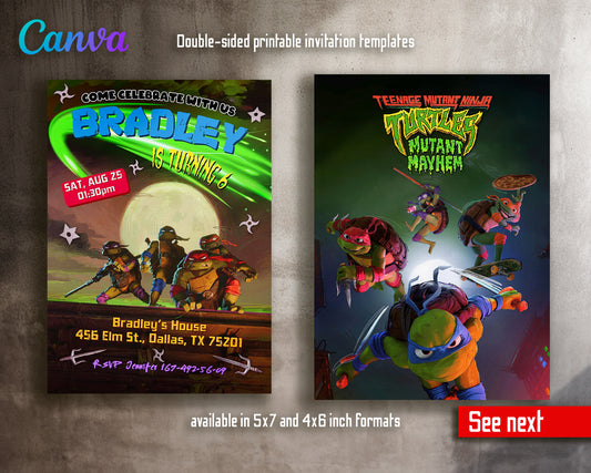 Teenage Mutant Ninja Turtles: Mutant Mayhem customizable invite template boy | instant download | Share or Print | YT353