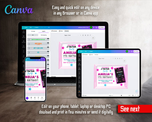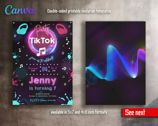 Tik Tok Party customizable invitation template | Share or Print | | AD061