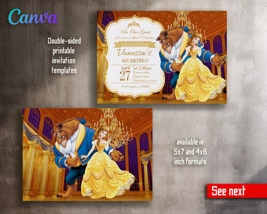 Belle Beauty And The Beast customizable invitation template | Share or Print | girl | EU566