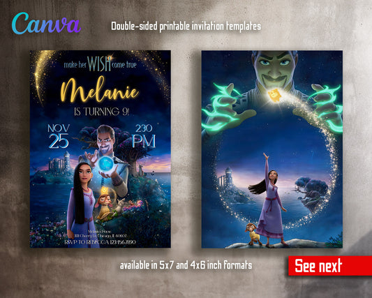 Wish Magic Asha customizable invitation template | Share or Print | girl | DD620