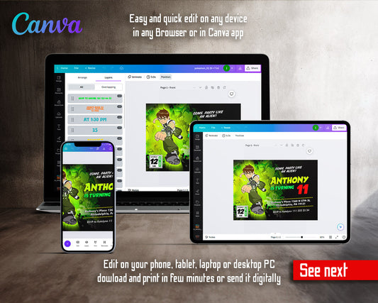 Ben 10 Alien Force customizable invitation template | Share or Print | boy | MS512