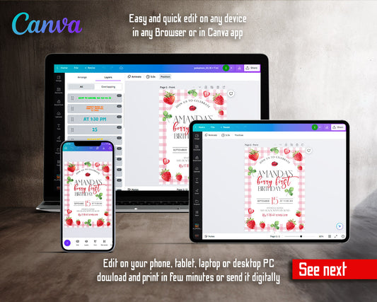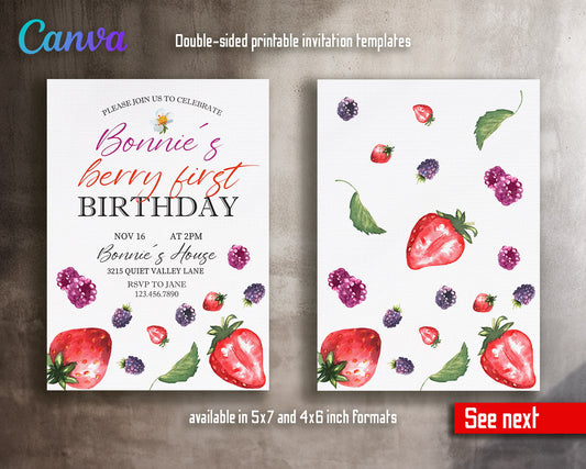 Berry First Birthday customizable invitation template | Share or Print | girl | LT456