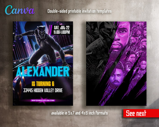Black Panther Superhero Marvel customizable invitation template | Share or Print | boy | PB905