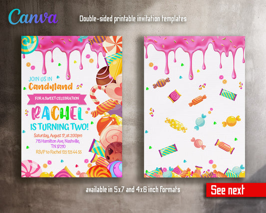 Candy Land Lollipop customizable invitation template | Share or Print | girl | FC593