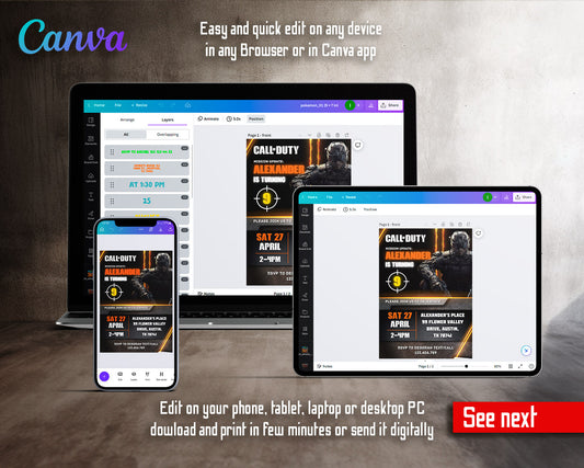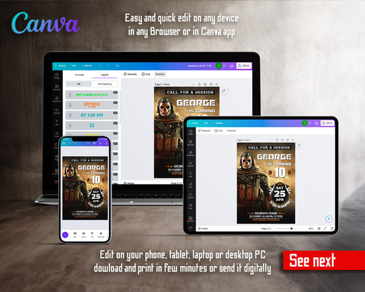 Call of Duty Gamer customizable invitation template | Share or Print | boy | PQ746