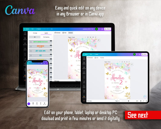 Butterfly Birthday customizable invitation template | Share or Print | girl | LM718