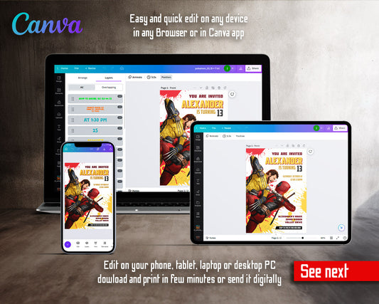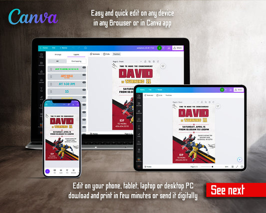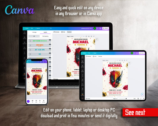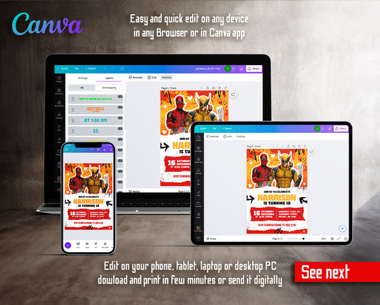 Deadpool Wolverine Marvel customizable invitation template | Share or Print | boy | DA851