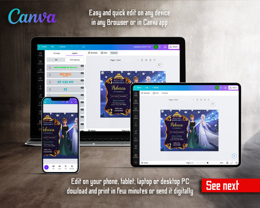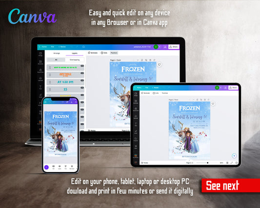 Frozen Elsa customizable invitation template | Share or Print | girl | MH540