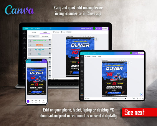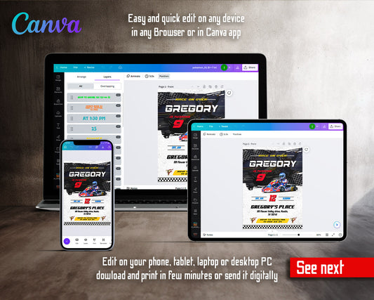 Go Kart Karting Racing customizable invitation template | Share or Print | boy | PN305