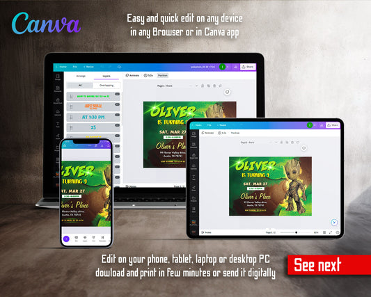 Groot Guardians of the Galaxy Superhero customizable invitation template | Share or Print | | VD389
