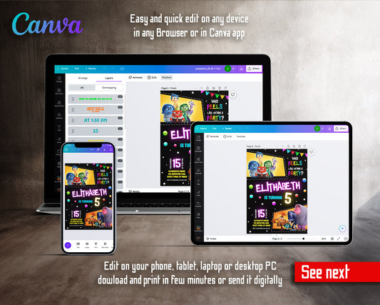 Inside Out 2 customizable invitation template | Share or Print | | TG810