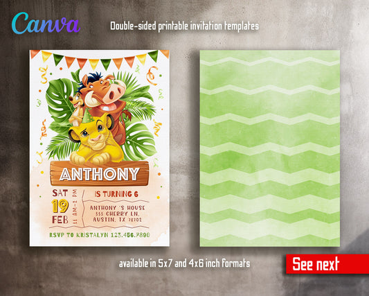 Lion King Simba customizable invitation template | Share or Print | | VG238