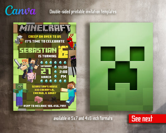 Minecraft customizable invite template | instant download | Share or Print | ZZ975