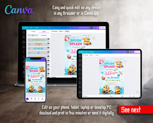 Minions Pool Party Despicable Me customizable invitation template | Share or Print | | EF133