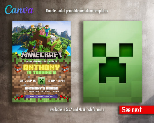 Minecraft Gamer customizable invitation template | Share or Print | | UH163
