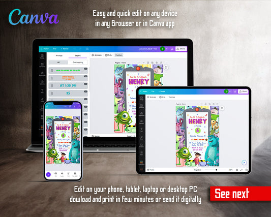 Monsters, Inc. customizable invitation template | Share or Print | | XD620