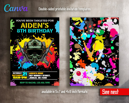 Paintball Airsoft battle customizable invitation template | Share or Print | boy | OG638