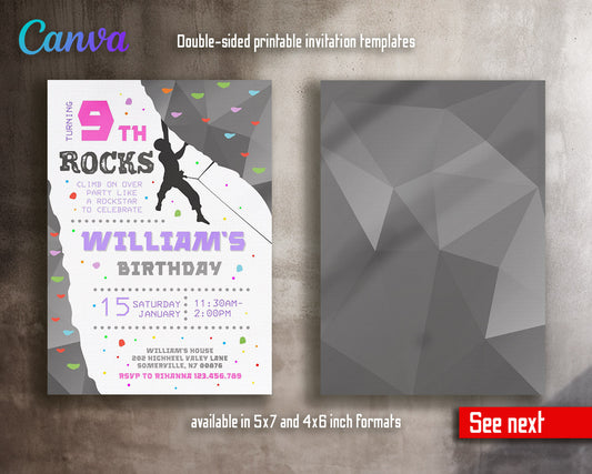 Rock Climbing customizable invitation template | Share or Print | | NV640