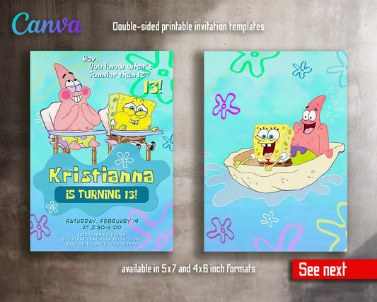 SpongeBob SquarePant customizable invitation template | Share or Print | | RX427