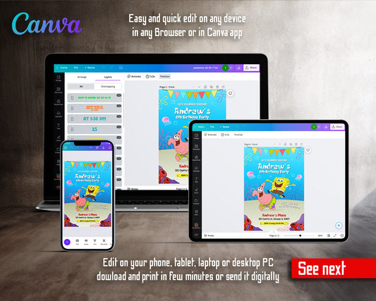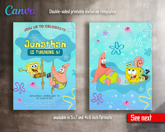 SpongeBob SquarePant customizable invitation template | Share or Print | | VJ289